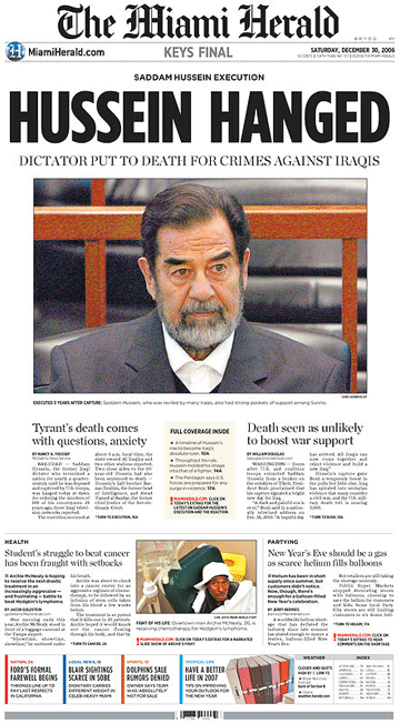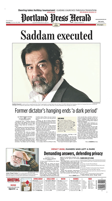 The last week of December is typically the slowest for news. But the past week was anything but slow as newspapers reported on the end of three remarkable lives: Godfather of Soul James Brown, President of the United States Gerald Ford and President of Iraq Saddam Hussein. To reflect the importance of these stories, newspapers responded with a remarkable number of six-column photos.